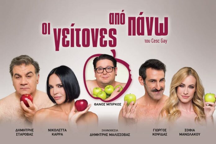 Προπώληση Viva.gr: https://www.viva.gr/tickets/theater/oi-geitones-apo-pano-kalokairini-periodeia/