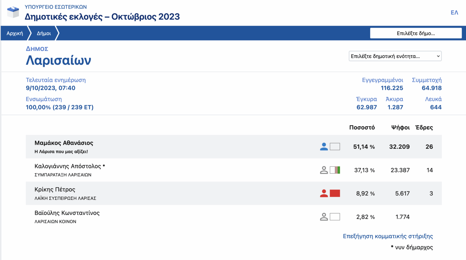 Στη Δημοτική Ενότητα Λαρισαίοι εκλέγονται οι: