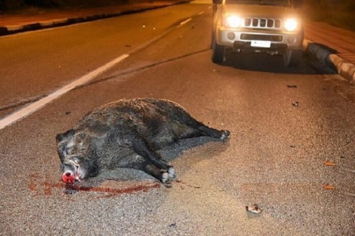 Ευτυχώς από τη σύγκρουση οι τέσσερις νεαροί δεν έπαθαν το παραμικρό, σε αντίθεση με το άγριο ζώο που έπεσε νεκρό στην άκρη του δρόμου.