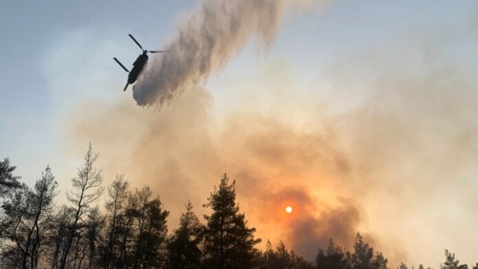 Επιστρέφει και πάλι η φωτιά από τη θάλασσα στο χωριό Στροφυλιά στη Βόρεια Εύβοια.