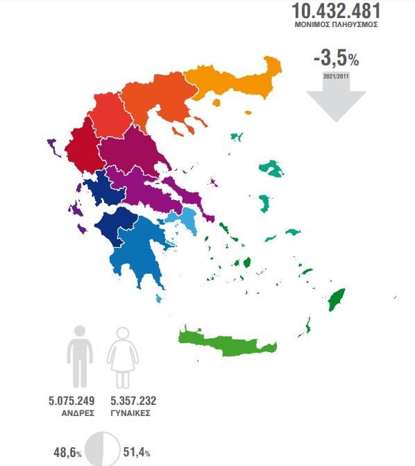 Βάσει των στοιχείων ο πληθυσμός της Ελλάδας είναι και επίσημα 10.432.481 άτομα.