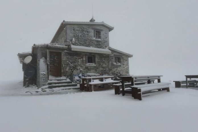 Χαρακτηριστικές είναι οι εικόνες από το καταφύγιο «Χρήστος Κάκαλος» που το χιόνι πέφτει από τα ξημερώματα.