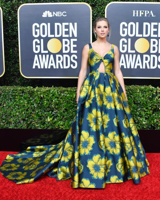 H Taylor Swift με floral gown του οίκου Etro σε μπλε και κίτρινο χρώμα.