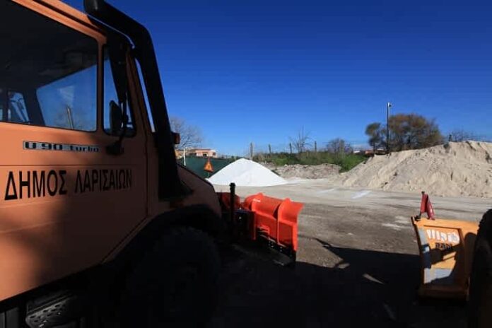Μεγάλο μέρος του μηχανολογικού εξοπλισμού και εργαζομένων του Δήμου Λαρισαίων βρίσκεται σε κατάσταση αυξημένης ετοιμότητας προκειμένου να επέμβουν εάν χρειαστεί, ενώ σε κατάσταση ετοιμότητας βρίσκονται μηχανήματα και προσωπικό ιδιωτικών εταιρειών. Στις εγκαταστάσεις του Δήμου, υπάρχει και μεγάλη επάρκεια σε αλάτι.