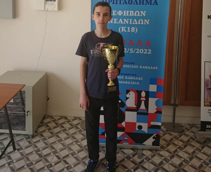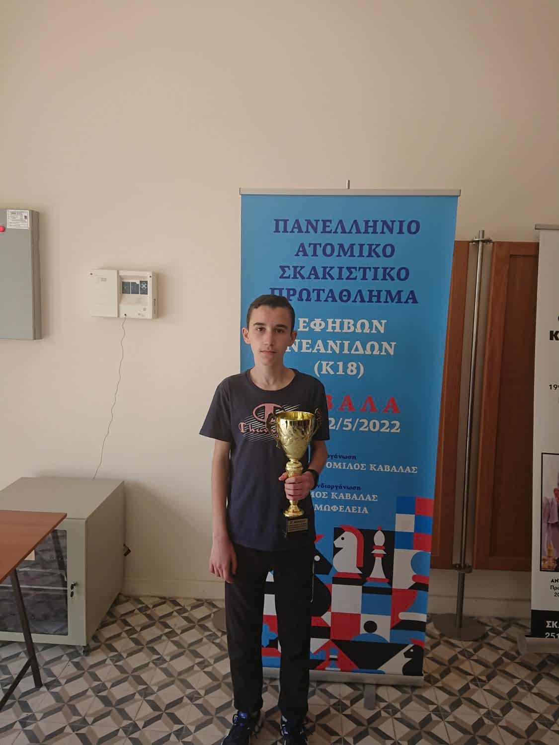 ΛΑΡΙΣΑ Διάκριση 15χρονου Λαρισαίου Σκακιστή στο Πανελλήνιο Πρωτάθλημα Εφήβων 3 Μαΐου 2022 Τη 2η θέση στο Πανελλήνιο Ατομικό Πρωτάθλημα Εφήβων στο σκάκι κατέκτησε ο 15χρονος Λαρισαίος Δριστέλλας Νεοκλής με 6,5 βαθμούς σε 9 αγώνες. Το πρωτάθλημα διεξάχθηκε στην Καβάλα από 26/4/22-02/5/22 και συμμετείχαν 49 αθλητές από όλη την Ελλάδα.
