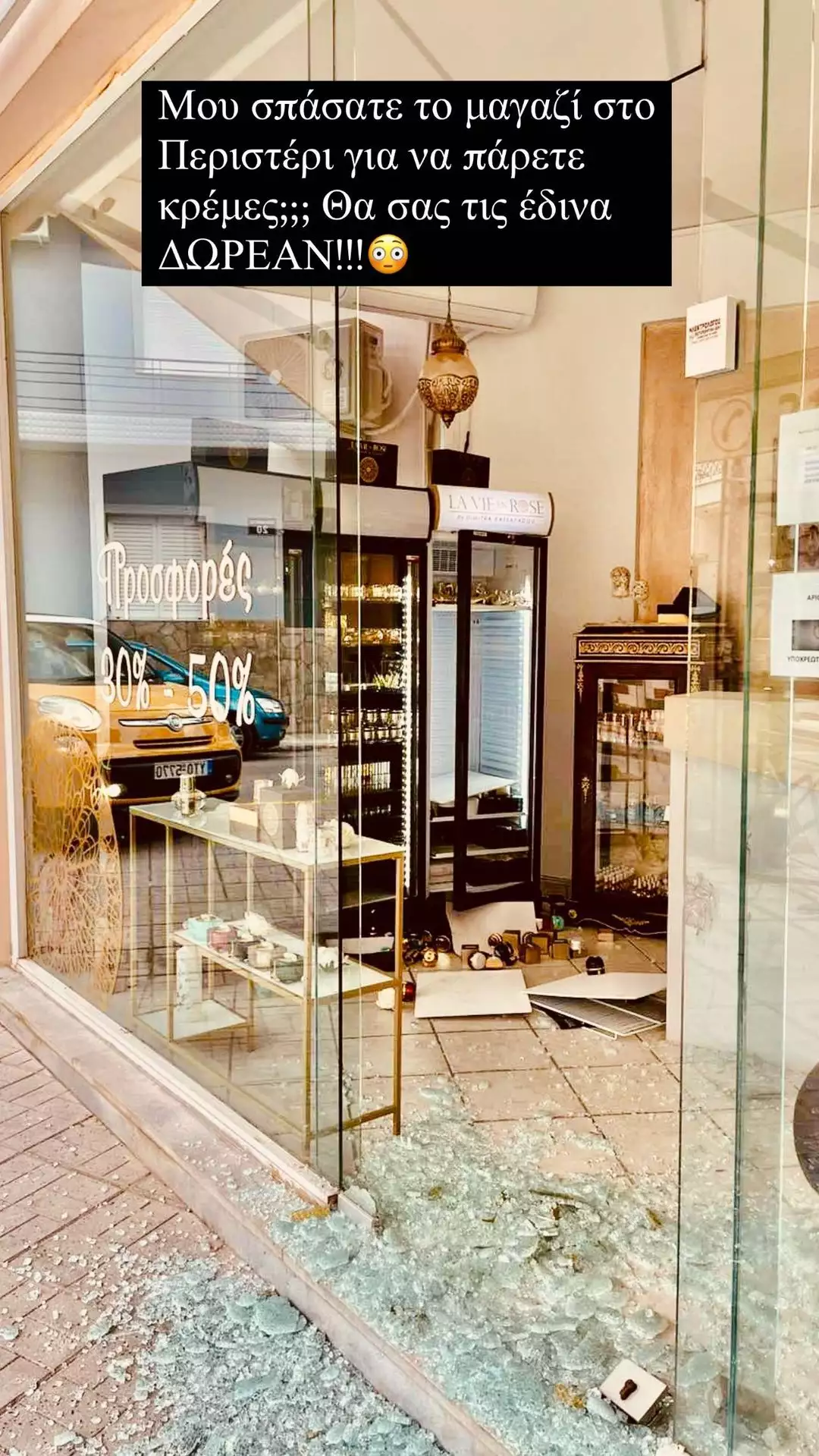 «Μου σπάσατε το μαγαζί στο Περιστέρι για να πάρετε τις κρέμες;;; Θα σας τις έδινα δωρεάν», έγραψε χαρακτηριστικά δείχνοντας με αυτόν τον τρόπο το μεγαλείο της ψυχής της.