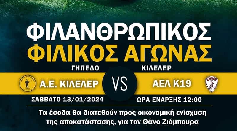 - 12:00 Φιλανθρωπικός φιλικός ποδοσφαιρικός αγώνας ΑΕ Κιλελέρ – ΑΕΛ Κ19 στο γήπεδο της ΤΚ Κιλελέρ.