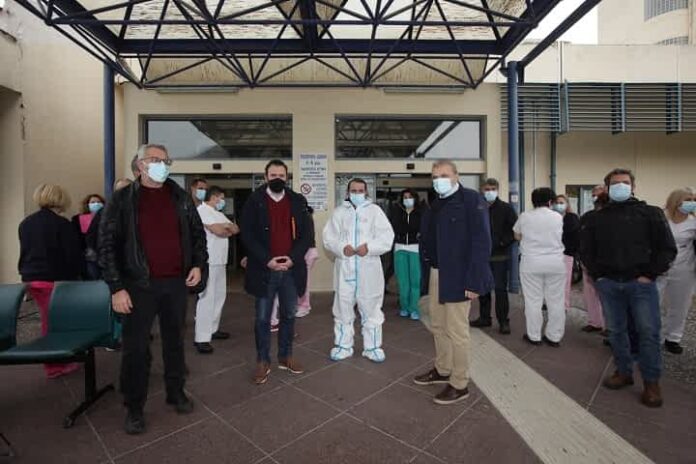 Τα στελέχη της δημοτικής αρχής, συνοδευόμενα από το μέλος του Δ.Σ. του Συλλόγου Εργαζομένων στο ΠΠΝΛ κ. Κ. Λαρίση, βρέθηκαν στο Νοσοκομείο προκειμένου να συναντήσουν με το νοσηλευτή και απεργό πείνας κ. Λ. Τσαπαλή.
