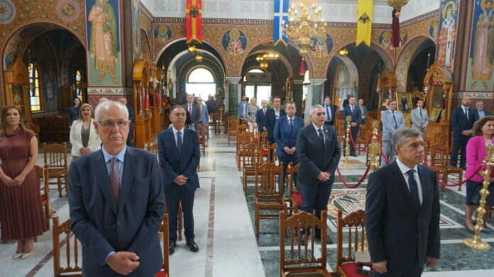 Μετά το τέλος της τελετής, αντάλλαξαν ευχές για την εορτή της πόλης, με τα μέτρα προστασίας να τηρούνται στις περισσότερες – τουλάχιστον – περιπτώσεις.