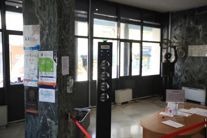 Έτσι οι υπάλληλοι και όσοι πολίτες προσέρχονται στο Δημαρχείο, θερμομετρούνται αυτόματα στην είσοδο του Δημαρχείου,