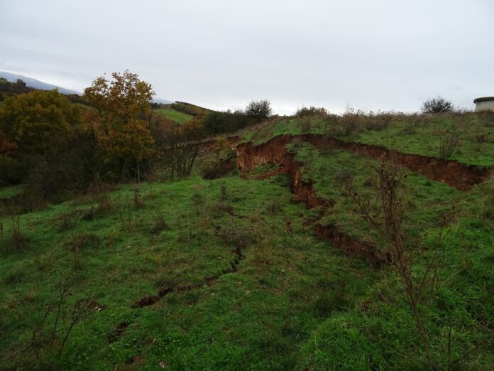 Εκτεταμένη καθίζηση του εδάφους σημειώθηκε την περασμένη Τρίτη 3/12/2019 σε αγροτική περιοχή της κτηματικής περιφέρειας Πετρωτού της Κοινότητας Καλλιθέας.