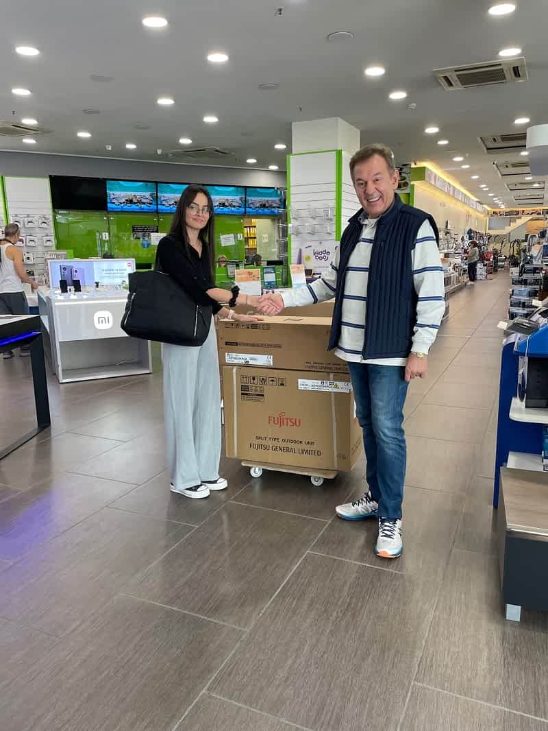 Ήδη η μία από τους μεγάλους τυχερούς του Σαββάτου παρέλαβε το δώρο της. Πρόκειται για την κυρία Βουρβουράκη Έφη η οποία αγόρασε ένα σετ εντοιχισμένες και κέρδισε ένα κλιματιστικόFujitsu τελευταίας τεχνολογίας. Μάλιστα όπως είπε, είναι η πρώτη της φορά που κερδίζει κάτι!