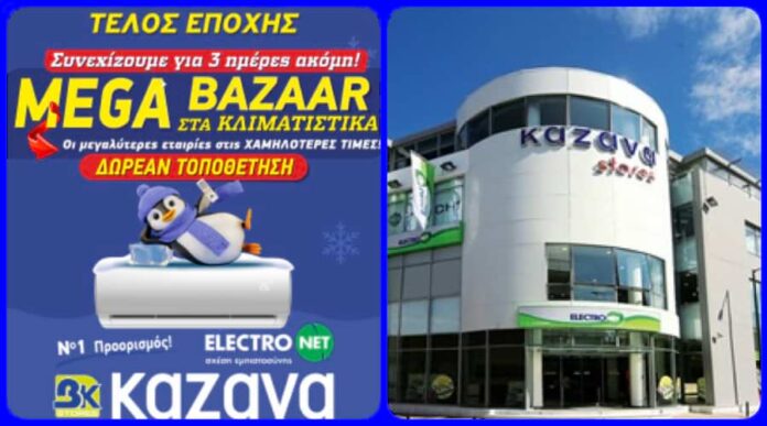 Το μεγαλύτερο bazaar κλιματιστικών, οι μεγαλύτερες εταιρίες και οι μικρότερες τιμές είναι στην Electronet B.K.Καζάνα! Μόνο για 3 μέρες ακόμη μπορείτε να αποκτήστε κλιματιστικά σύγχρονης τεχνολογίας σε μεγάλες προσφορές.