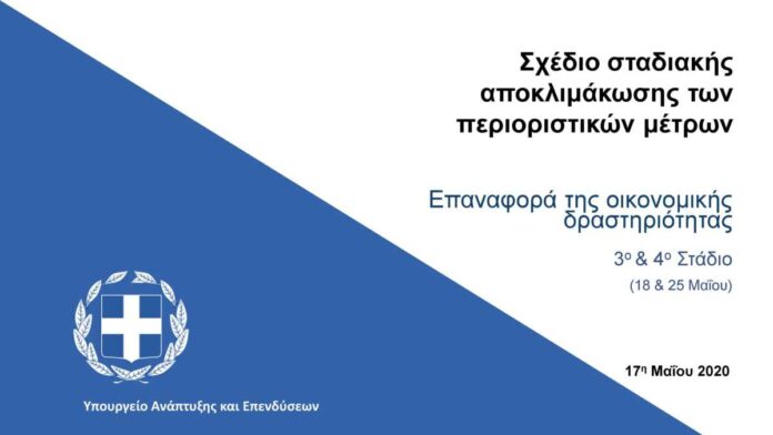 “Συνολικά, στα 4 στάδια επανεκκίνησης της οικονομίας από τις 4 Μαΐου έως και τις 25 Μαΐου, επιστρέφουν σε λειτουργία 197.000 επιχειρήσεις δηλαδή το 65% των επιχειρήσεων που ήταν σε αναστολή λειτουργίας.
