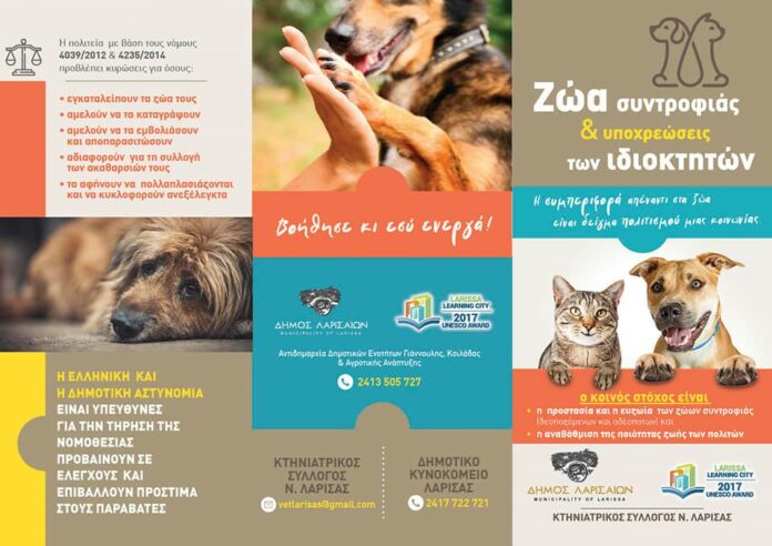 Ενημερωτική εκστρατεία για τα Ζώα συντροφιάς και τις υποχρεώσεις των ιδιοκτητών! Το φυλλάδιο διανέμεται μέσω των λογαριασμών της ΔΕΥΑΛ.