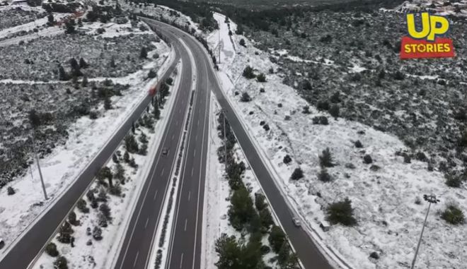 Η ομάδα Up Stories δεν έχασε την ευκαιρία να καταγράψει τα λευκά αποτελέσματα της “Ζηνοβίας” και να παρουσιάσει εντυπωσιακά πλάνα από τις εναέριες πτήσεις της πάνω από την Εθνική Οδό Αθηνών – Λαμίας.