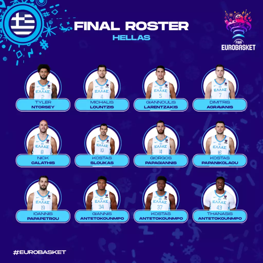 Ο Κώστας Αντετοκούνμπο, ο Γιώργος Παπαγιάννης και ο Κώστας Σλούκας τέθηκαν στη διάθεση της Εθνικής Ελλάδας, παρά τα προβλήματα τραυματισμών και θα βοηθήσουν την προσπάθειά της για ένα μετάλλιο στη διοργάνωση. Εκτός έμειναν αντίθετα στο τελευταίο “κόψιμο”, οι Κασελάκης και Μποχωρίδης.