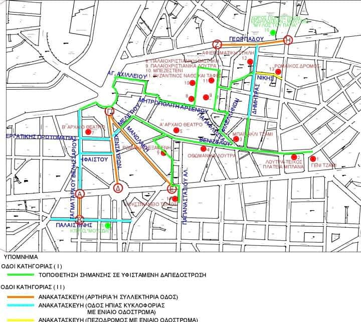 Σε δρόμους ήπιας κυκλοφορίας με ενιαίο οδόστρωμα θα μετατραπούν τα παρακάτω τμήματα οδών: