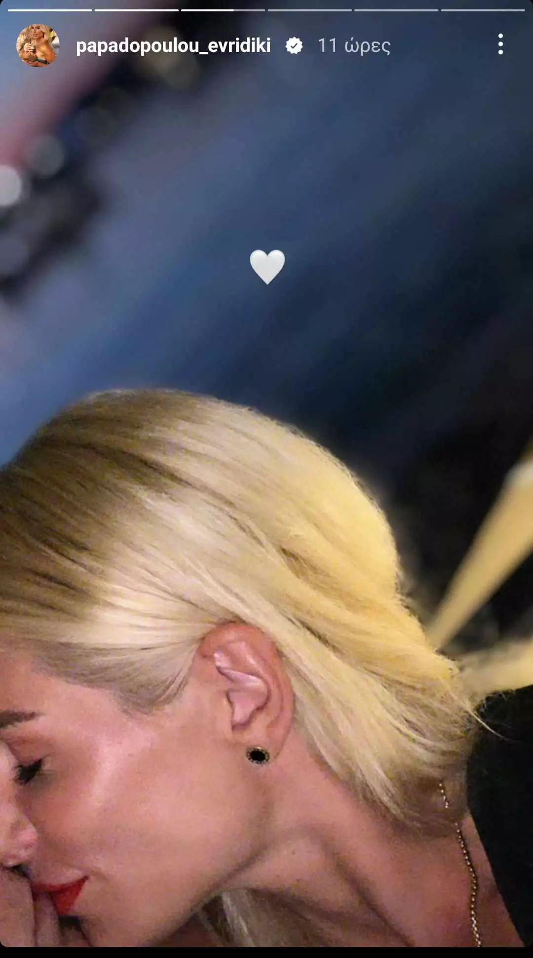 Όπως θα δεις, οι δυο τους ανταλλάσσουν ένα τρυφερό φιλί στο στόμα, ωστόσο η Ευρυδίκη Παπαδοπούλου κρύβει το πρόσωπο του άντρα που της έκλεψε την καρδιά.