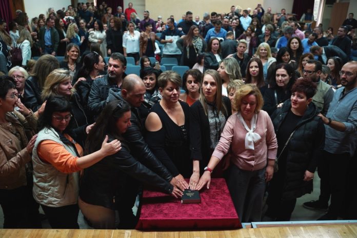 Οι 125 νέοι υπάλληλοι που ορκίστηκαν, ενώπιον του Δημάρχου Λαρισαίων Απόστολου Καλογιάννη, στο Χατζηγιάννειο Πνευματικό Κέντρο, (από τους 206 συνολικά υπαλλήλους που περιλάμβανε η προκήρυξη για το Δήμο Λαρισαίων), αναλαμβάνουν άμεσα καθήκοντα με στόχο την βελτίωση της καθαριότητας στην πόλη.