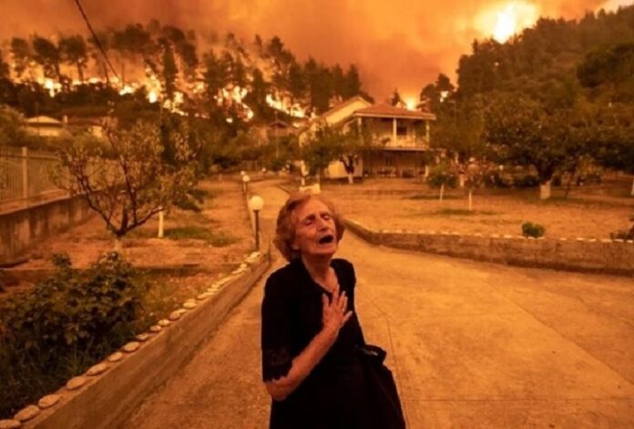 Financial Times, Guardian, The Telegraph, Daily Mail. Οι μεγαλύτεροι ειδησεογραφικοί τίτλοι παγκοσμίως στα πρωτοσέλιδά τους σήμερα δεν έχουν κάποια είδηση που επηρεάζει την οικονομία ή την υγεία της υφηλίου, αλλά τη φωτογραφία του Κωνσταντίνου Τσακαλίδη με την 81χρονη γυναίκα που εγκαταλείπει συντετριμμένη το φλεγόμενο σπίτι της, στις Γούβες Εύβοιας.