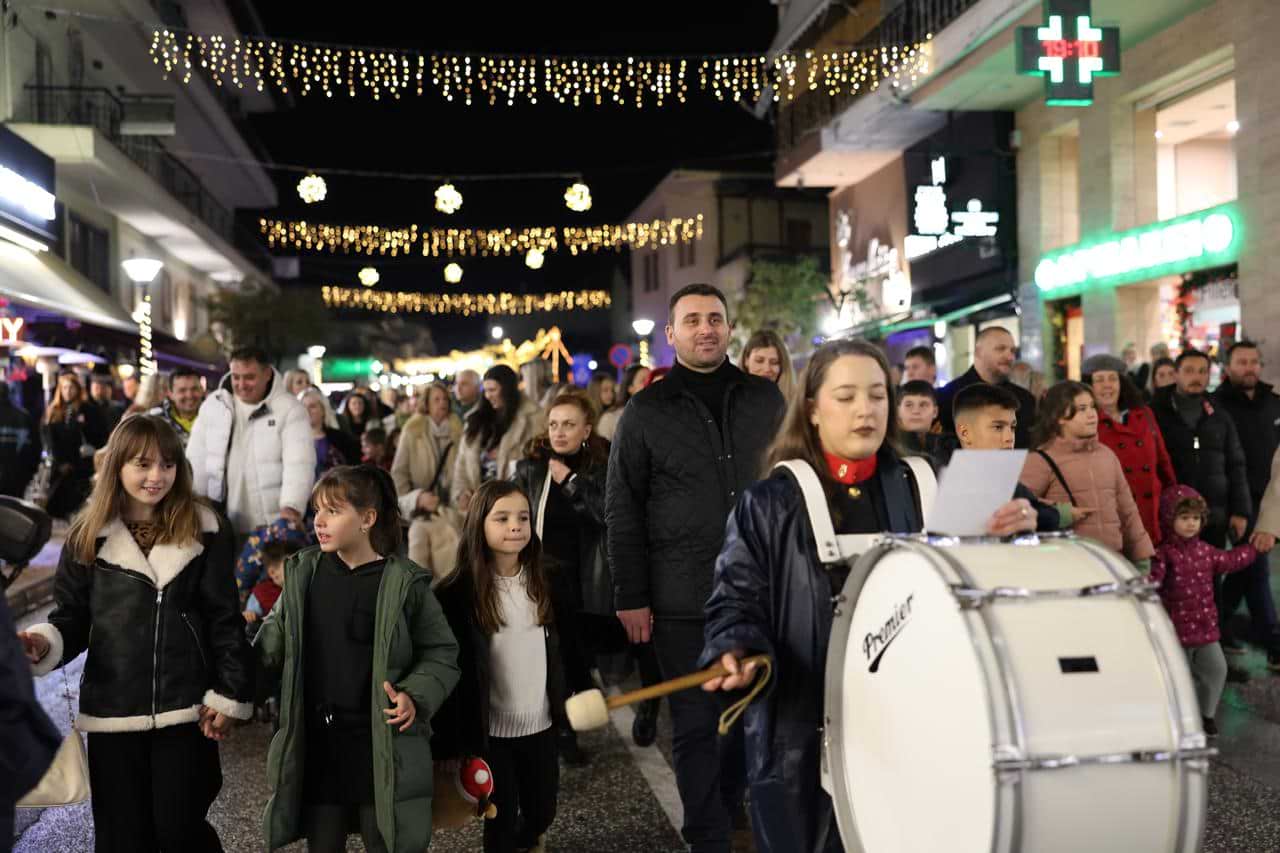 Ο Δήμαρχος Μετεώρων, Λευτέρης Αβραμόπουλος, ξεκίνησε την πορεία από το Δημαρχείο και, συνοδευόμενος από δεκάδες μικρά παιδιά και τη Φιλαρμονική του Δήμου Μετεώρων, που πλημμύρισε την κεντρική οδό με χριστουγεννιάτικες νότες, περπάτησε μέχρι την πλατεία Δημουλά. Το πλήθος ακολούθησε σε μια πομπή γεμάτη χαρά και γιορτινό κλίμα, δημιουργώντας μια μοναδική εικόνα ενότητας και εορταστικής προσμονής.