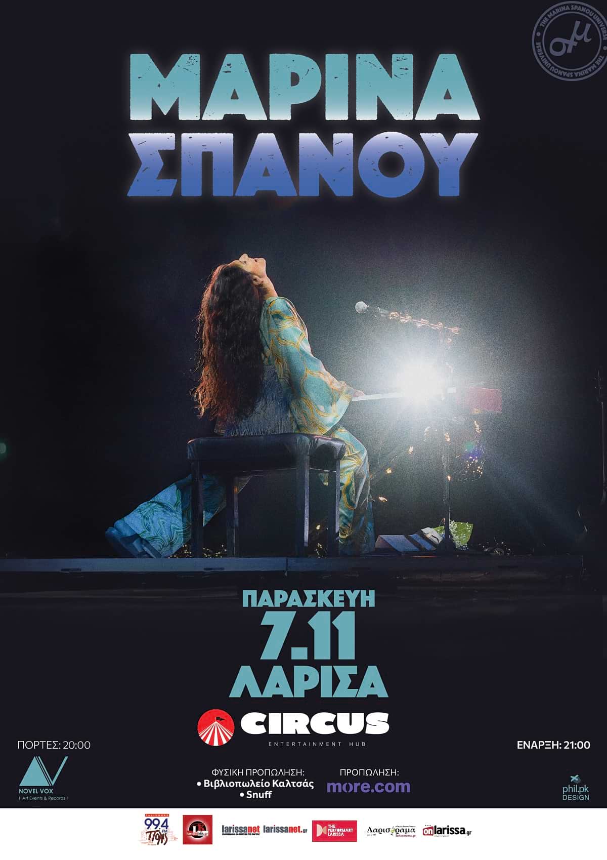 Η Μαρίνα Σπανού, μετά από ένα καλοκαίρι γεμάτο συναυλίες, έρχεται στη Λάρισα μαζί με την μπάντα της για μια εμφάνιση, για πρώτη φορά μετά την κυκλοφορία του νέου της άλμπουμ.