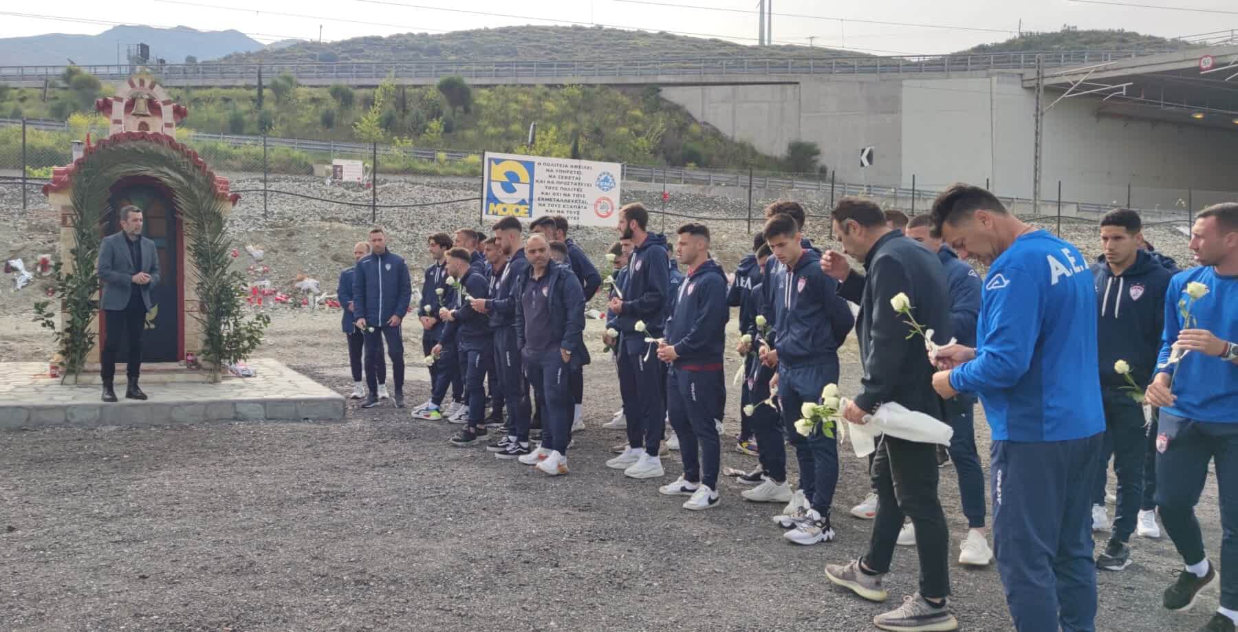 Με επικεφαλής τον πρόεδρο και τον αντιπρόεδρό της, Αχιλλέα και Γιάννη Νταβέλη και παρουσία τεχνικής ηγεσίας, ποδοσφαιριστών και του συνόλου στελεχών και υπαλλήλων αγωνιστικού και διοικητικού τμήματος, η ΠΑΕ ΑΕΛ επισκέφθηκε νωρίς το πρωί της Μεγάλης Παρασκευής, το σημείο της τραγωδίας των Τεμπών, στέλνοντας το ακόλουθο μήνυμα: