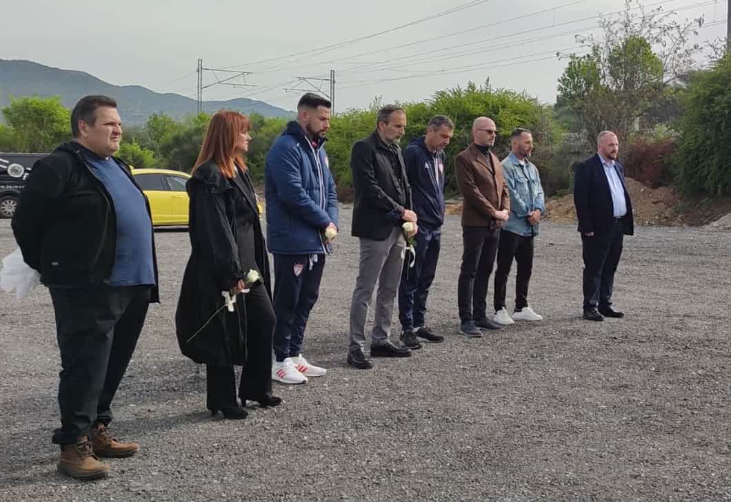 Κατά την παραμονή τους στο σημείο, συγκλονισμένοι οι “βυσσινί”, κατέθεσαν στεφάνι με το λάβαρο της ομάδας και το μήνυμα “Ποτέ Ξανά” και απέθεσαν λευκά τριαντάφυλλα, ενώ τηρήθηκε και ενός λεπτού σιγή.