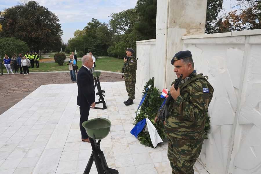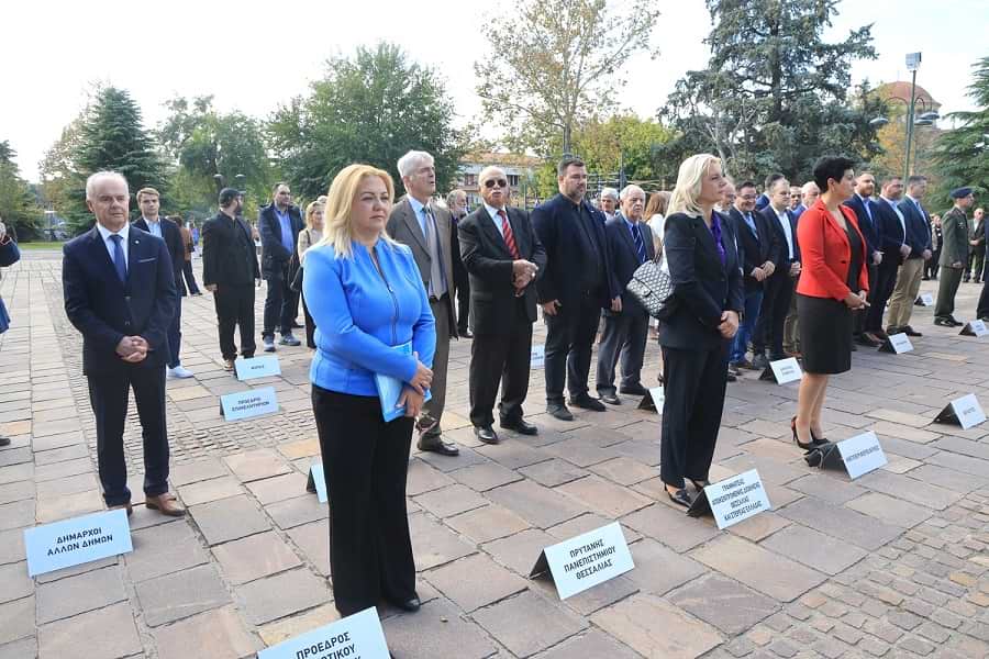 Να σημειωθεί ότι, στεφάνια κατέθεσαν, μεταξύ άλλων, οι κ.κ.: Δήμαρχος Λαρισαίων, Θανάσης Μαμάκος, Αντιπεριφερειάρχης Μαρία Γαλλιού, Γραμματέας Της Αποκεντρωμένης Διοίκησης Θεσσαλίας και Στερεάς Ελλάδας, Ρένα Καραλαριώτου, Δήμαρχος Τεμπών Γεώργιος Μανώλης, εκπρόσωπος Ανώτερου Διοικητή Φρουράς Ταξίαρχος Παύλος Κωνσταντινίδης, Γενικός Περιφερειακός Αστυνομικός Διευθυντής Θεσσαλίας Ταξίαρχος Στυλιανός Μπιλιάλης, Διοικητής Περιφερειακής Διοίκησης Πυροσβεστικών Υπηρεσιών Θεσσαλίας Αναστάσιος Καρατζάς, η Διευθύντρια Α’ Θμιας Εκπαίδευσης Λάρισας Αικατερίνη Καραγιώργου, ο αναπληρωτής Διευθυντής Β’ Θμιας Εκπαίδευσης Λάρισας Ζέρβας Νικόλαος, η επόπτρια Περιφερειακής Εκπαίδευσης Θεσσαλίας, Άρτεμις Παπαδημητρίου, η εκπρόσωπος Γαλλικής Πρεσβείας στην Ελλάδα και διευθύντρια του Γαλλικού Ινστιτούτου Λάρισας Χρύσα Βουλγαράκη, Πρόεδρος της Ισραηλητικής Κοινότητας Λάρισας Μωυσής Μανουάχ, ο Α΄ Αντιπρόεδρος του Επιμελητηρίου Λάρισας, Δημήτρης Παπαλέξης, εκπρόσωπος του κόμματος Συνασπισμός Ριζοσπαστικής Αριστεράς Προοδευτική Συμμαχία Λάρισας, Εύη Παπανίκα, από την Ένωση Αποστράτων Αξιωματικών Στρατού Περιφερειακής ενότητας Λάρισας πρόεδρος Γιώργος Στέφος, από την Ένωση Αποστράτων Αξιωματικών Αεροπορίας Περιφερειακής ενότητας Λάρισας πρόεδρος Βασίλης Παπαδόπουλος, από τον Σύνδεσμο Εφέδρων Αξιωματικών Ν. Λάρισας πρόεδρος Δημήτρης Κατσανάκης, η Έφορος τοπικού τμήματος Λάρισας του Σώματος Ελληνικού Οδηγισμού Καλυψώ Μασούρα, για την Περιφερειακή Εφορεία Προσκόπων Κεντρικής και Δυτικής Θεσσαλίας αναπληρωτής ο έφορος Γεώργιος Ντάβας, ως εκπρόσωπος του Ιατρικού Συλλόγου Λάρισας ο δημοτικός σύμβουλος Αριστείδης Καρτσαφλέκης, ως εκπρόσωπος Φαρμακευτικού Συλλόγου Λάρισας το μέλος του Δ.Σ. Ιωάννης Τσιμπούκης, ο Πρόεδρος του Συλλόγου Κυπρίων Ν. Λάρισας Ντίνος Αυγουστή, η Πρόεδρος του Συλλόγου Φίλων Μουσείου Εθνικής Αντίστασης Κατερίνα Εμμανουήλ, ο Πρόεδρος του Συλλόγου AHEPA HELLAS Τμήμα Λάρισας Βασίλης Καραβασίλης, ο Πρόεδρος του Συλλόγου Εικαστικών Ν.Λάρισας, Γιάννης Γεωργιάδης, ο εκπρόσωπος της ΑΜΚΕ “Θράκα” Θάνος Γώγος.