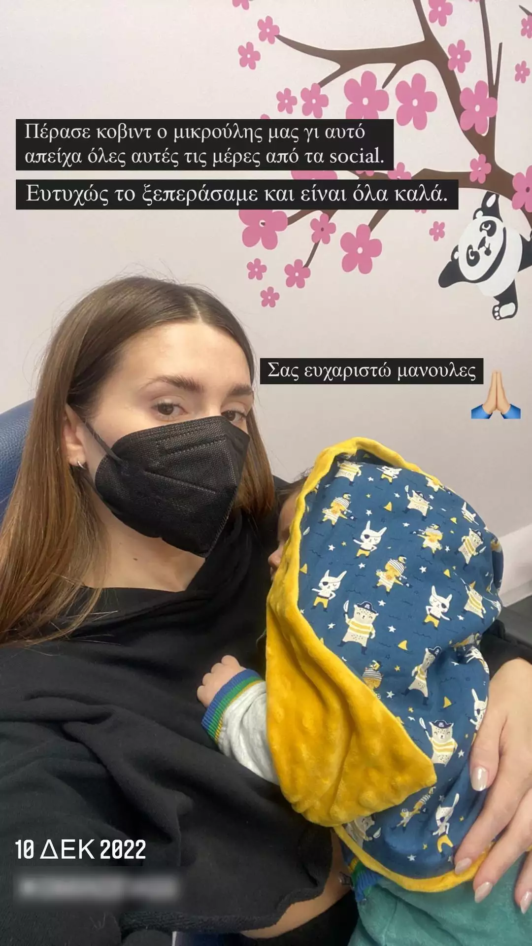 «Πέρασε κόβιντ ο μικρούλης μας, για αυτό απείχα όλες αυτές τις ημέρες από τα social. Ευτυχώς το ξεπεράσαμε και είναι όλα καλά. Σας ευχαριστώ μανούλες».