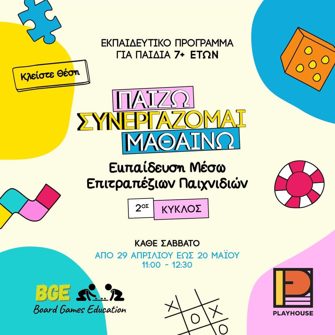 Παίζω, Συνεργάζομαι, Μαθαίνω. Ο 2ος κύκλος βιωματικής εκπαίδευσης μέσω επιτραπέζιων παιχνιδιών ξεκινάει στο Πάρκο Καινοτομίας, στην ειδικά διαμορφωμένη αίθουσα, Future Learning Lab και υπό την καθοδήγηση ειδικού παιχνιδογνώστη/ εκπαιδευτή. Το εκπαιδευτικό πρόγραμμα για παιδιά περιλαμβάνει 4 συναντήσεις το μήνα όπου θα παίξουμε, θα συνεργαστούμε και θα μάθουμε μέσα από τα επιτραπέζια παιχνίδια.