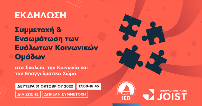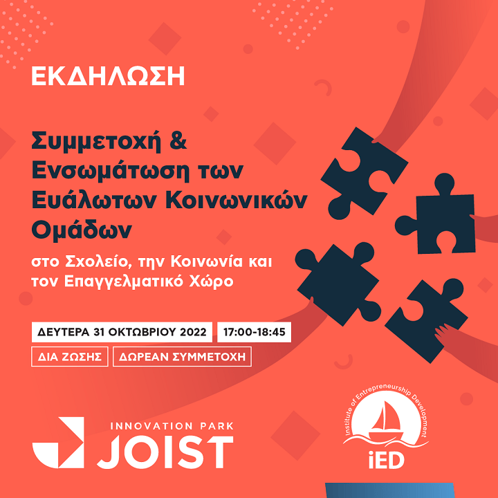 - Μάθετε περισσότερα και εγγραφείτε δωρεάν στον παρακάτω σύνδεσμο: https://joistpark.eu/ekdiloseis/symmetoxi-endynamosi-ton-eyaloton-koinonikon-omadon/