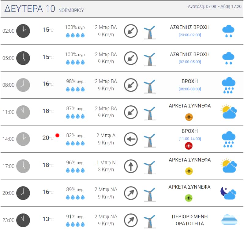 2. Την Κυριακή (09-11-25) από τις προμεσημβρινές ώρες στο Ιόνιο και από το απόγευμα στη δυτική Στερεά και την Ήπειρο.
