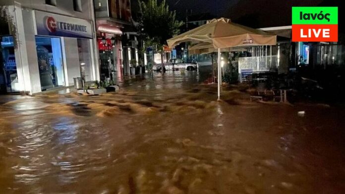 Ο Ιανός χτύπησε τα Φάρσαλα – Στο κόκκινο ποτάμια και ρέματα