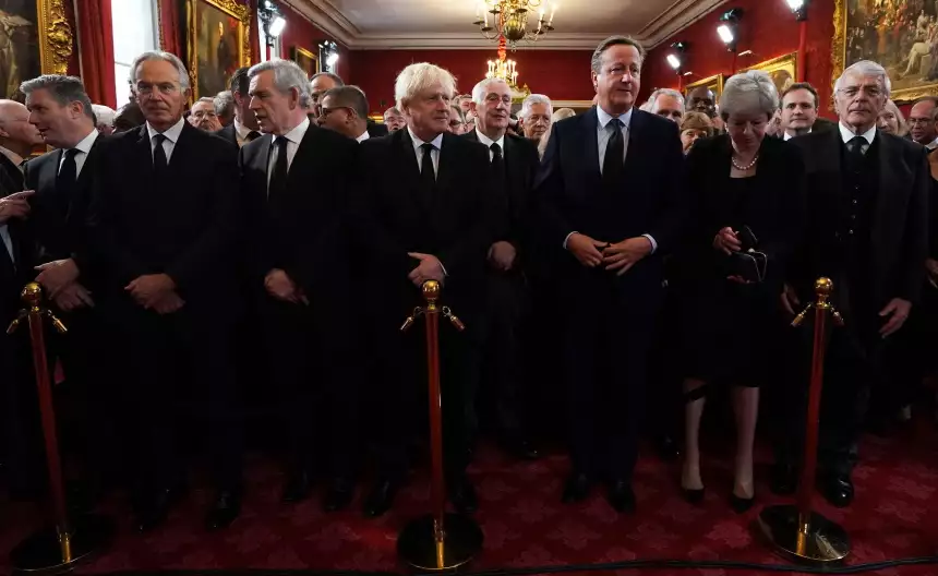 Οι σημαίες ήδη κυματίζουν στο υψηλότερο σημείο του ιστού, λόγω της ημέρας, διότι ξεκίνησε η τελετή στο Συμβούλιο Διαδοχής από τις 10 το πρωί (ώρα Βρετανίας) στο παλάτι του Αγίου Ιακώβου.