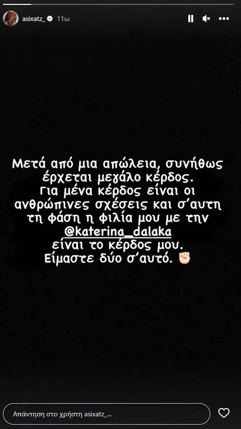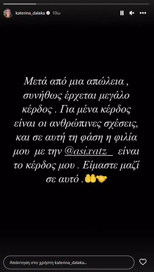Την ίδια ανάρτηση έκανε και η Κατερίνα Δαλάκα στον λογαριασμό της στο instagram: