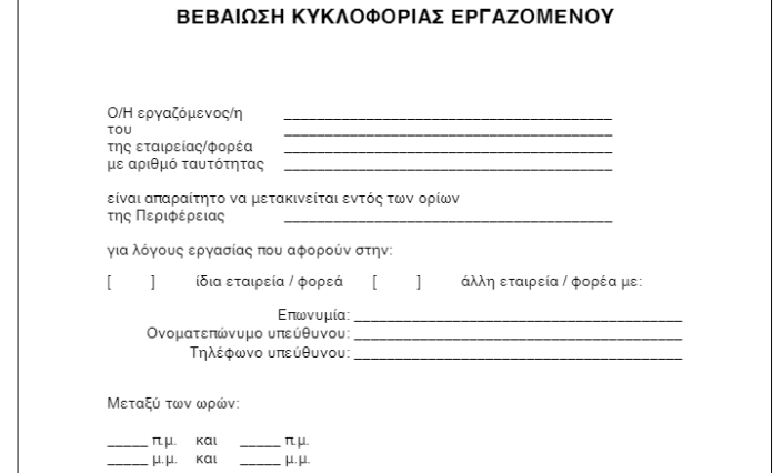 ΒΕΒΑΙΩΣΗ ΚΥΚΛΟΦΟΡΙΑΣ ΕΡΓΑΖΟΜΕΝΟΥ
