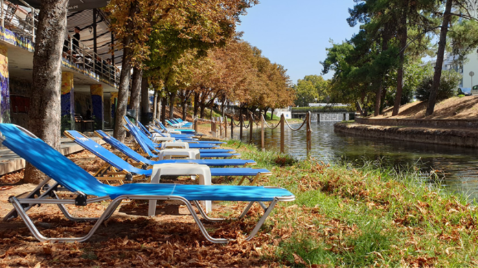 Πλέον, ο δήμος το προχώρησε ένα βήμα παραπέρα και όπως καταγράφει το trikalavoice.gr κάτω από την παραποτάμια οδό Αμαλίας που έκλεισε πειραματικά και για μια εβδομάδα με στόχο να πεζοδρομηθεί στήθηκαν ξαπλώστρες και τραπεζάκια για να απολαμβάνει όποιος θέλει το ποτάμι… σαν να είναι θάλασσα.