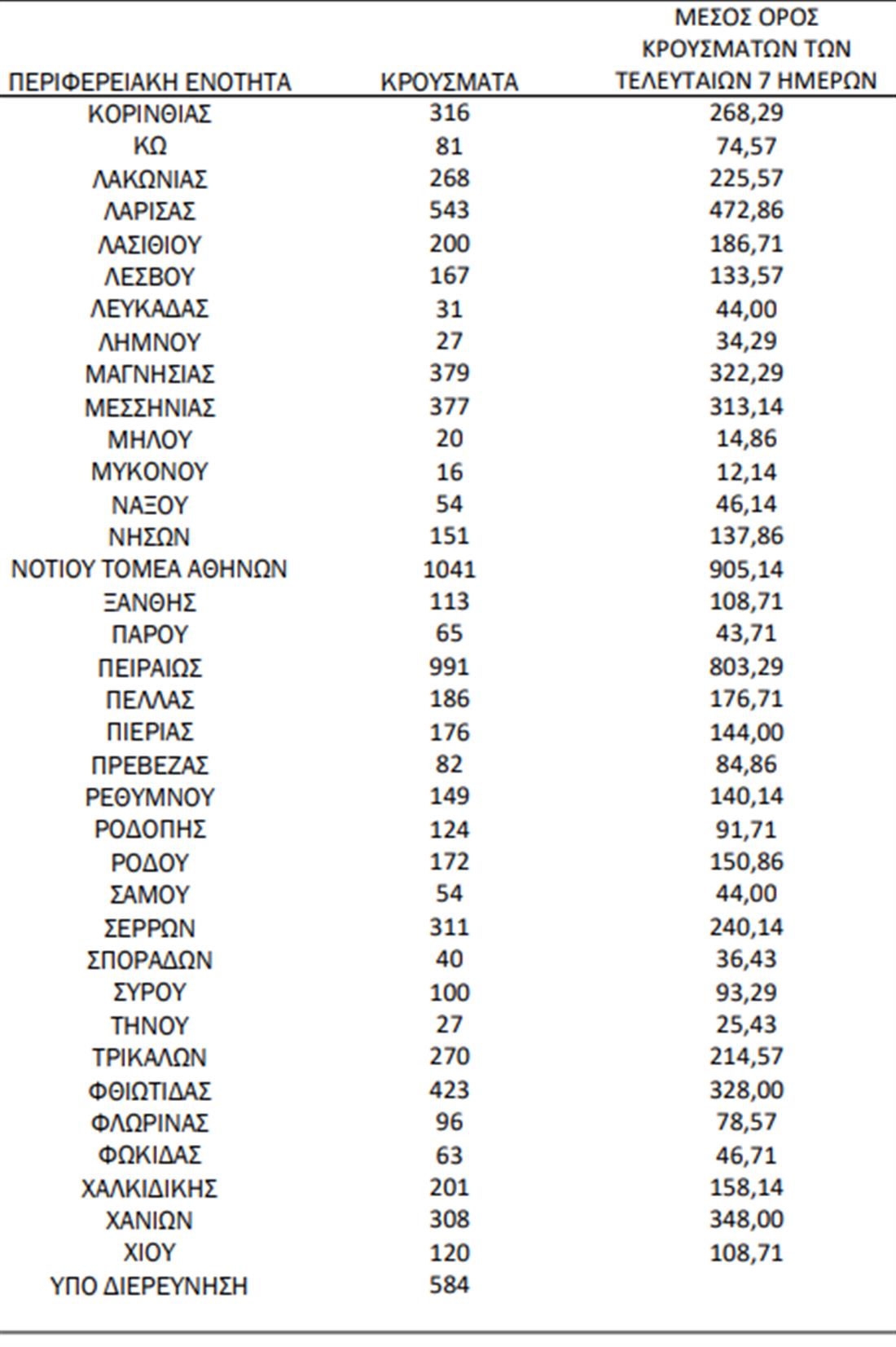Τα νέα κρούσματα κορονοϊού σήμερα Τετάρτη 30 Μαρτίου ανακοίνωσε ο ΕΟΔΥ.