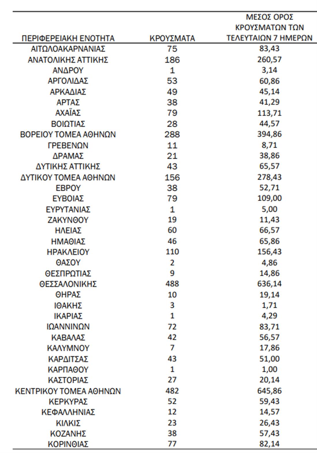 Τα νέα κρούσματα κορονοϊού σήμερα Μ. Σάββατο 23 Απριλίου ανακοίνωσε ο ΕΟΔΥ.