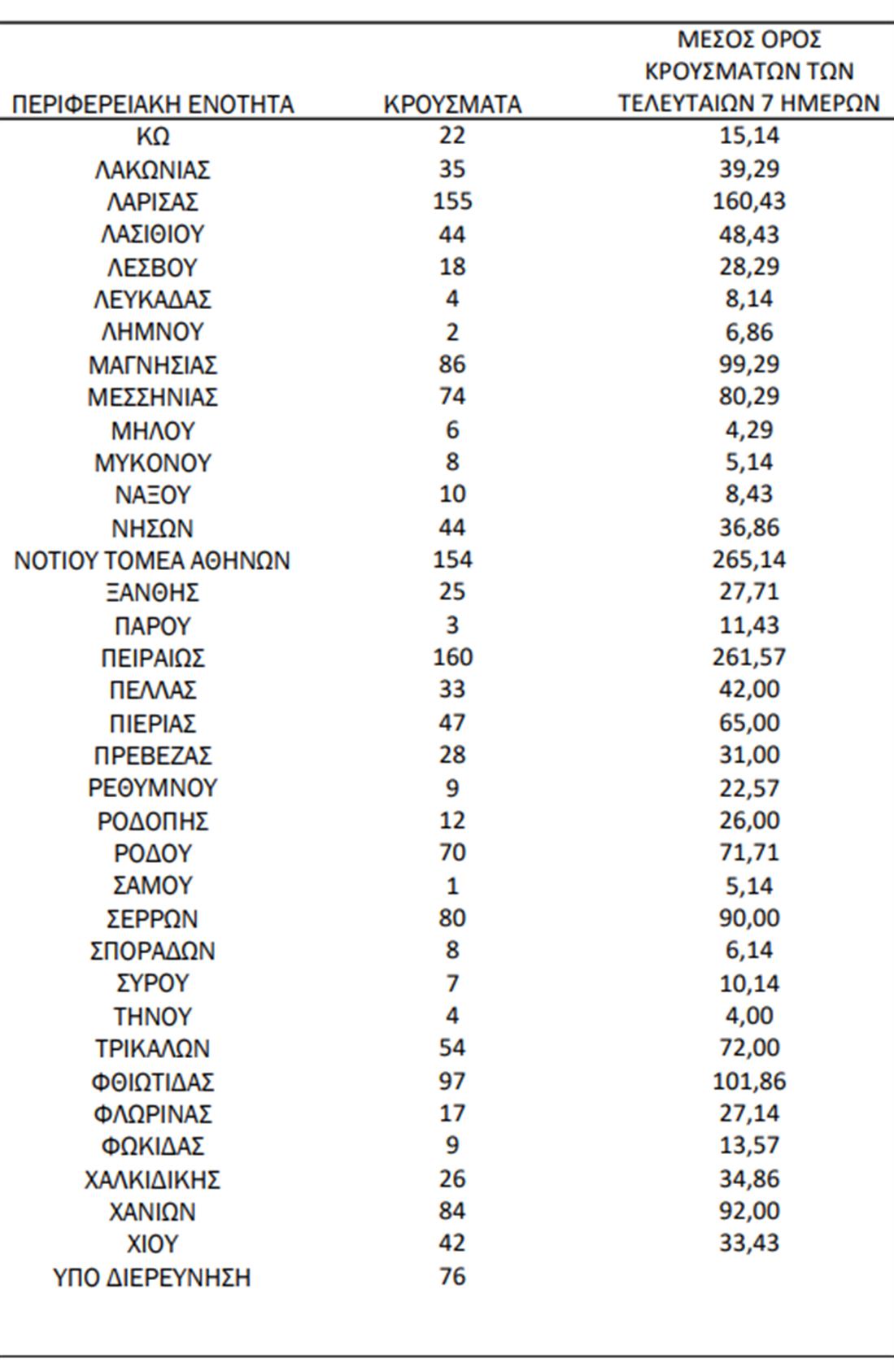 Τα νέα κρούσματα κορονοϊού σήμερα Μ. Σάββατο 23 Απριλίου ανακοίνωσε ο ΕΟΔΥ.