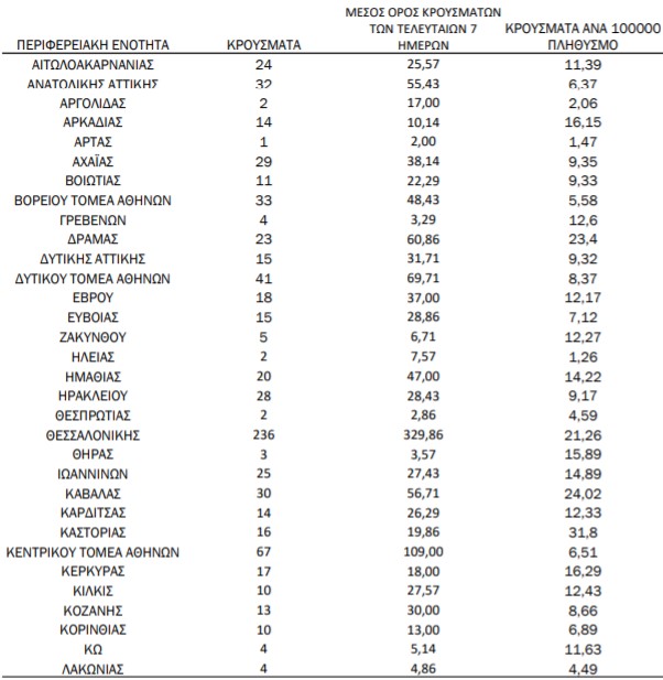 Με βάση τα επιβεβαιωμένα κρούσματα των τελευταίων 7 ημερών, 113 θεωρούνται σχετιζόμενα με ταξίδι από το εξωτερικό και 3.565 είναι σχετιζόμενα με ήδη γνωστό κρούσμα.