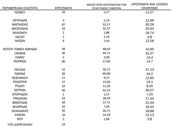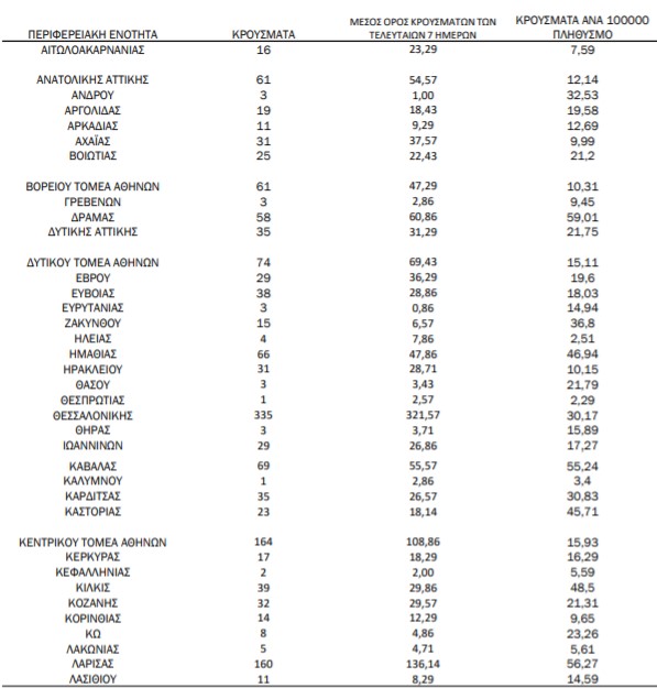 Με βάση τα επιβεβαιωμένα κρούσματα των τελευταίων 7 ημερών, 115
