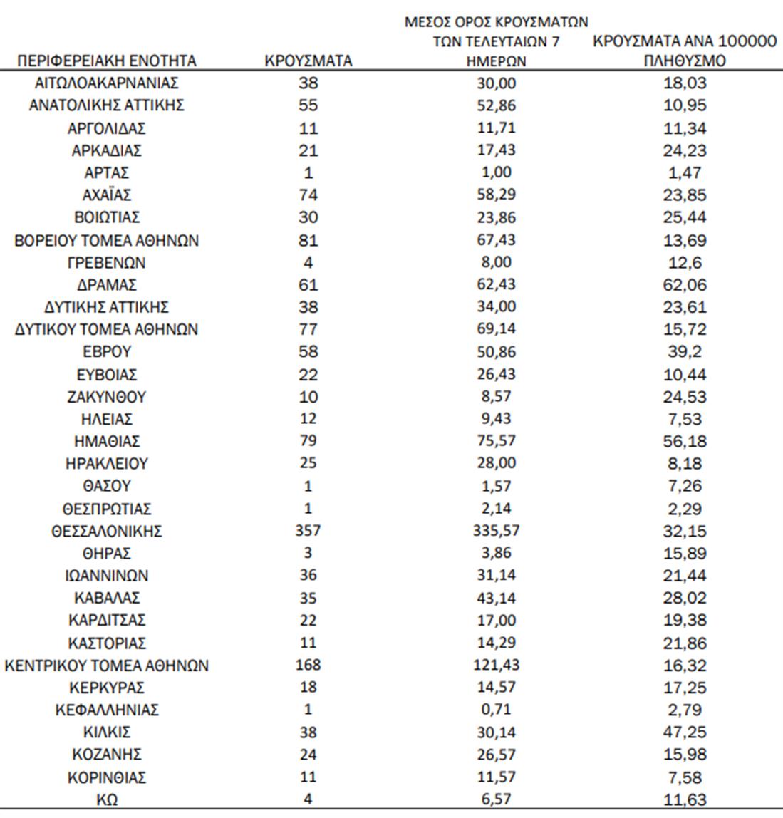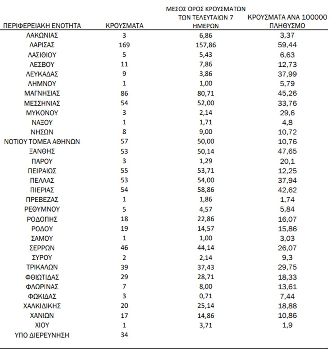ΕΟΔΥ: 169 νέα κρούσματα στην ΠΕ Λάρισας