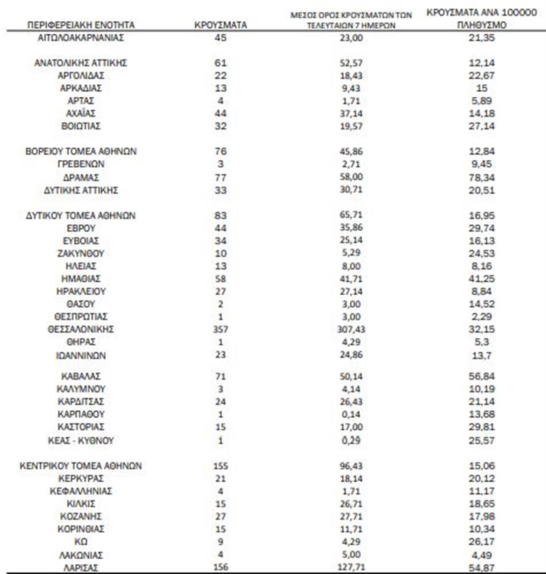 ΕΟΔΥ: 156 νέα κρούσματα στην ΠΕ Λάρισας