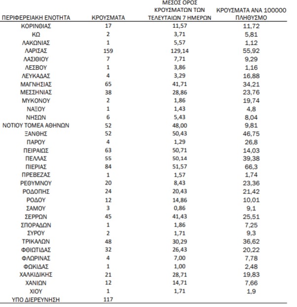 ΕΟΔΥ: 159 νέα κρούσματα στην ΠΕ Λάρισας