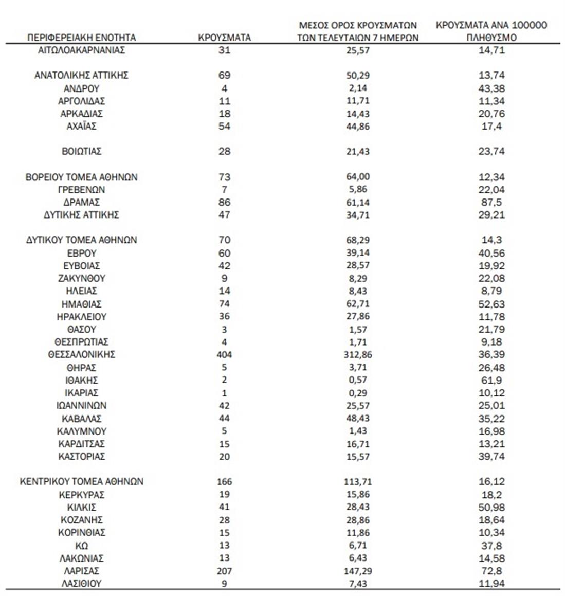 ΕΟΔΥ: 207 νέα κρούσματα στην ΠΕ Λάρισας