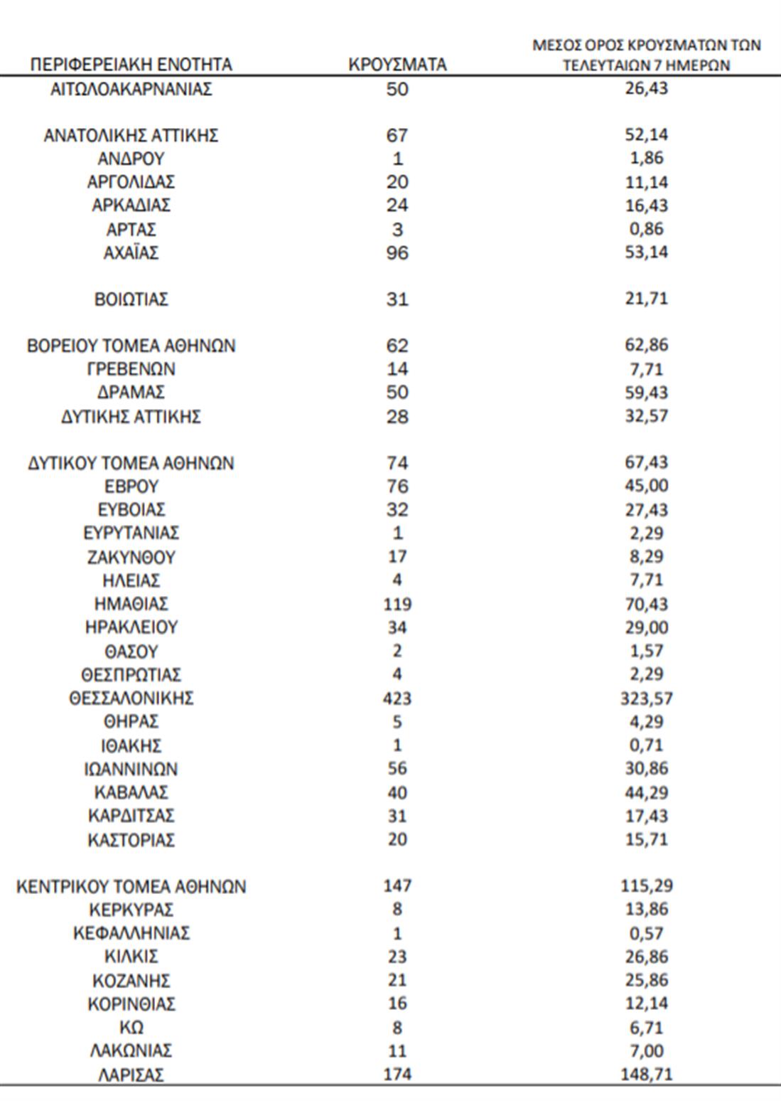ΕΟΔΥ: 174 νέα κρούσματα στην ΠΕ Λάρισας