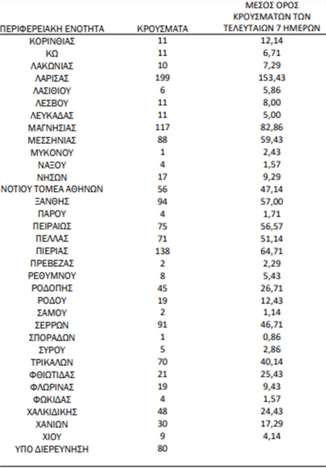 ΕΟΔΥ: 199 νέα κρούσματα στην ΠΕ Λάρισας